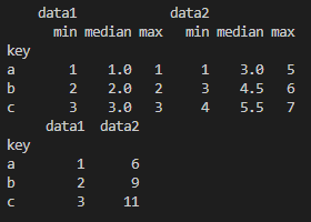 print(df.groupby('key').aggregate(['min',np.median,max]))