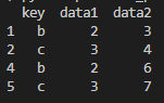 df = pd.DataFrame({'key':["a",'b','c',"a",'b','c'], 'data1':[1,2,3,1,2,3],'data2':[1,3,4,5,6,7]})
