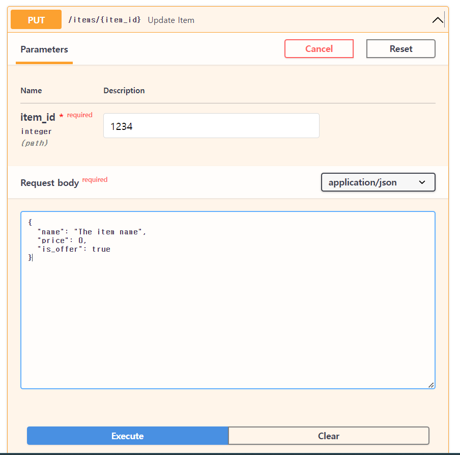 put 방식, item_id, item_name을 입력해주는 느낌.