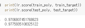 결국, LinearRegression() 객체에 fit(train_input, train.target) 해주는 것은, 다항식의 모델 파라미터를 구하는 과정!