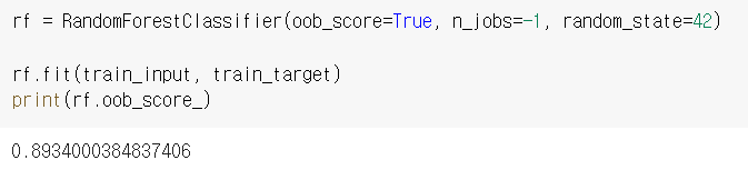 OOB 샘플로 검증 세트와 역할로 결정 트리를 평가한 점수를 받을 수 있다.