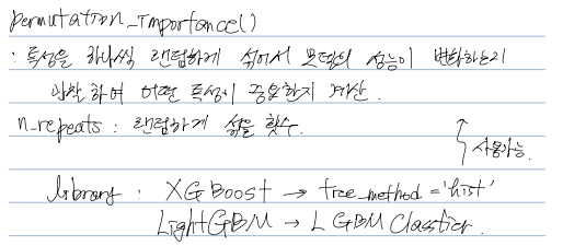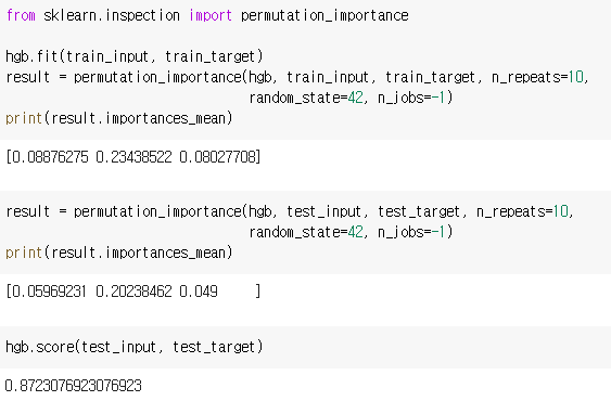 특성 중요도를 계산하기 위해 permutation_importance함수를 사용한다.