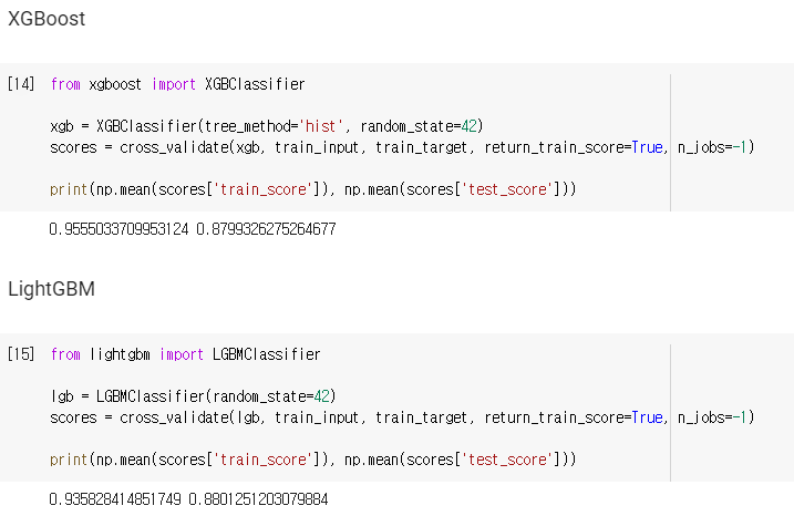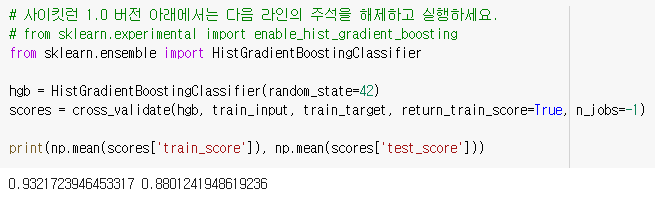 사이킷런이 아니라 다른 라이브러리로는 XGBoost나 LightGBM으로 히스토그램 기반 그레이디언트 부스팅 라이브러리.